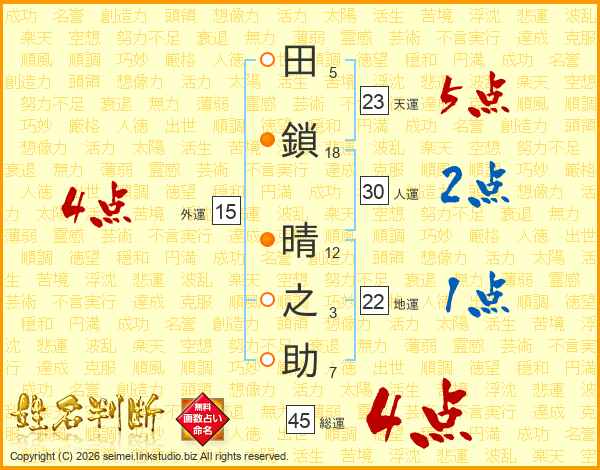 田鎖晴之助さんの総運は45画の4点!