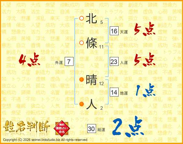北條晴人さんの総運は30画の2点!
