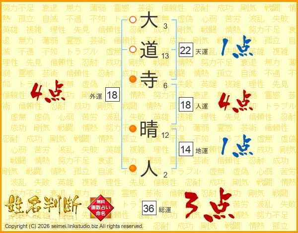 大道寺晴人さんの総運は36画の3点!