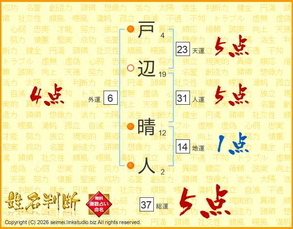 戸辺晴人さんの総運は37画の5点!