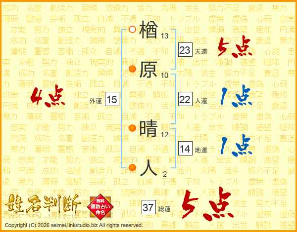 楢原晴人さんの総運は37画の5点!