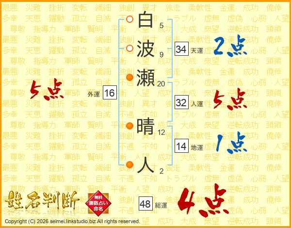 白(5画)波(9画)瀬(20画) 晴(12画)人(2画)