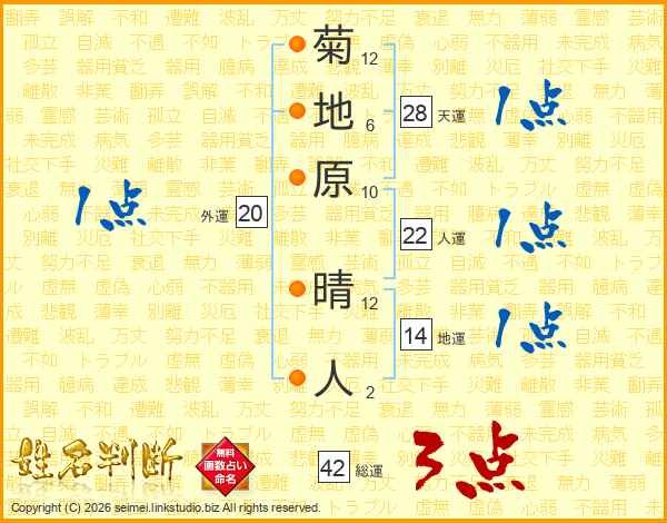 菊(12画)地(6画)原(10画) 晴(12画)人(2画)