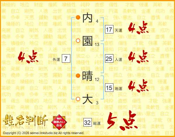 内園晴大さんの総運は32画の5点!