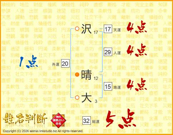 沢晴大さんの天運は17画の4点!