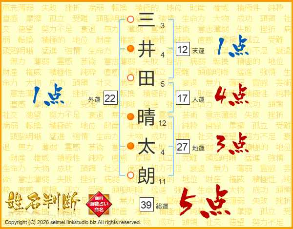 三井田晴太朗さんの総運は39画の5点!