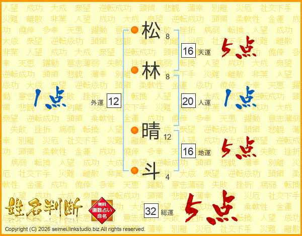 松林晴斗さんの総運は32画の5点!