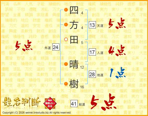 四方田晴樹さんの総運は41画の5点!