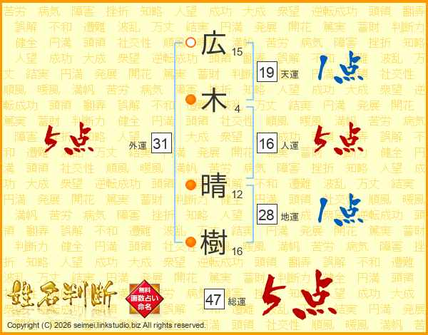 広木晴樹さんの総運は47画の5点!