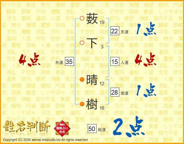 薮下晴樹さんの外運は35画の4点!