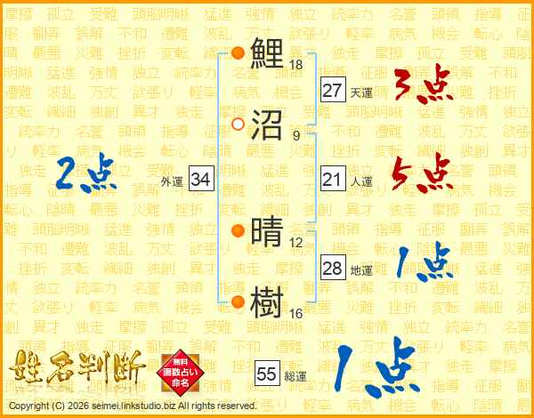 鯉沼晴樹さんの総運は55画の1点!