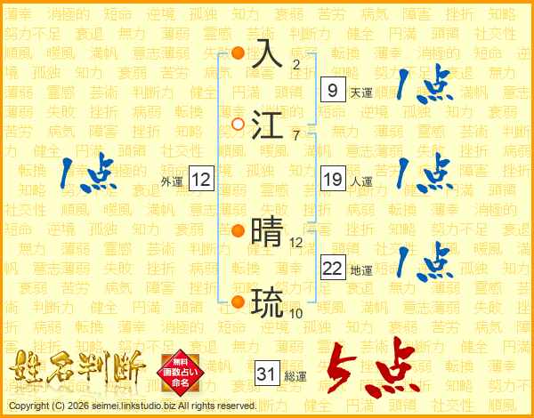 入江晴琉さんの総運は31画の5点!