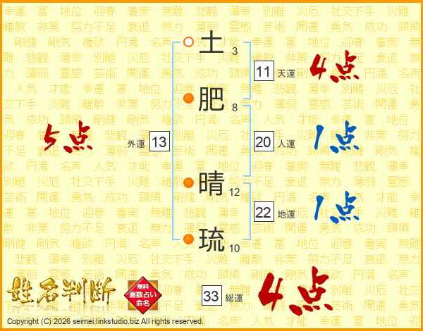 土(3画)肥(8画) 晴(12画)琉(10画)