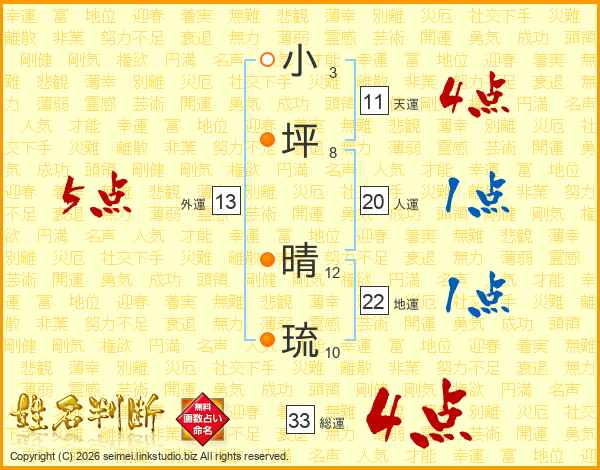 小(3画)坪(8画) 晴(12画)琉(10画)