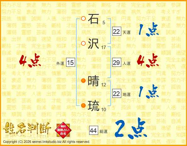石沢晴琉さんの総運は44画の2点!