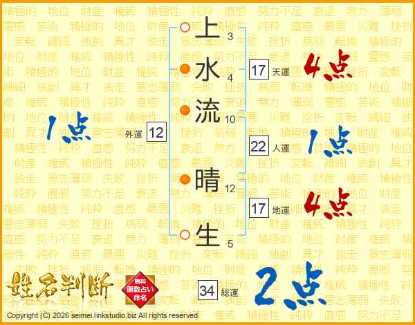 上(3画)水(4画)流(10画) 晴(12画)生(5画)