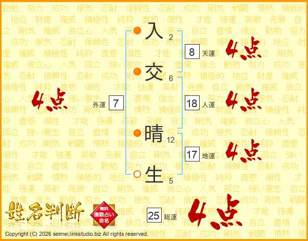入交晴生さんの総運は25画の4点!