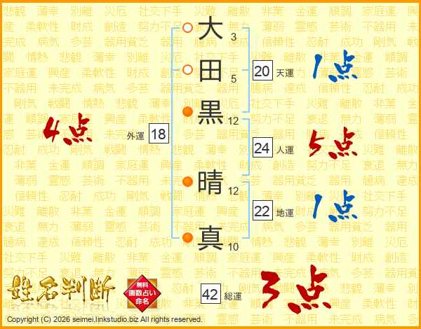 大田黒晴真さんの総運は42画の3点!