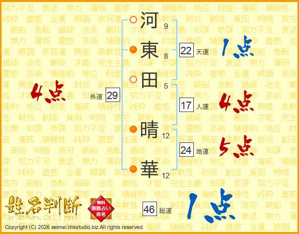 河東田晴華さんの地運は24画の5点!