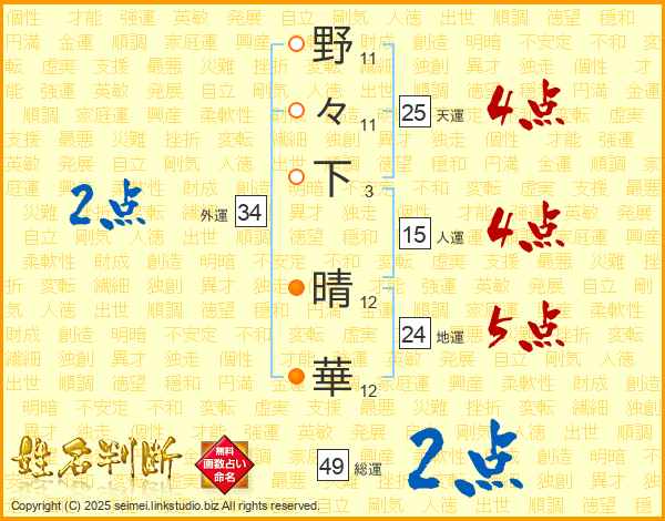 野々下晴華さんの天運は25画の4点!