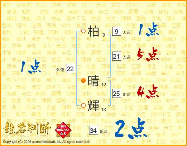 柏(9画) 晴(12画)輝(13画)