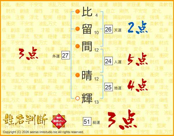比留間晴輝さんの天運は26画の2点!