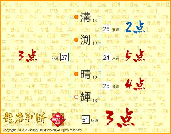溝渕晴輝さんの総運は51画の3点!