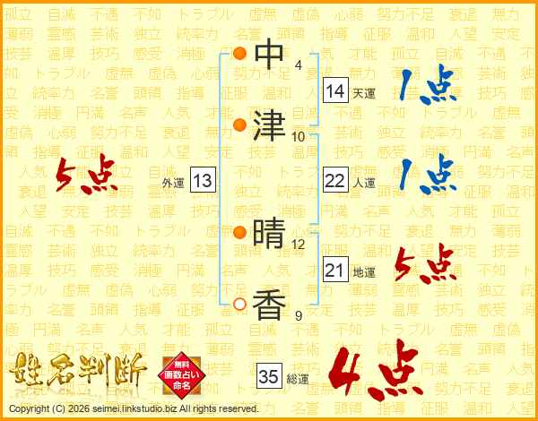中津晴香さんの総運は35画の4点!