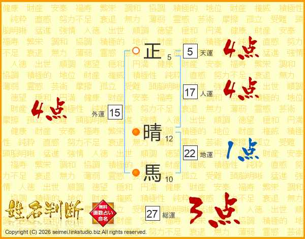 正晴馬さんの総運は27画の3点!
