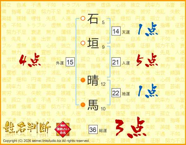 石垣晴馬さんの総運は36画の3点!