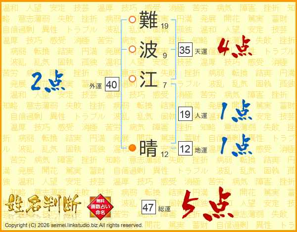 難波江晴さんの総運は47画の5点!