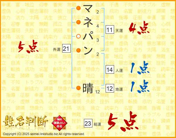 マ(2画)ネ(4画)パ(3画)ン(2画) 晴(12画)