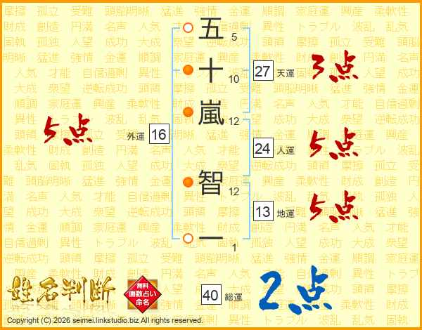 五十嵐智一さんの人運は24画の5点!
