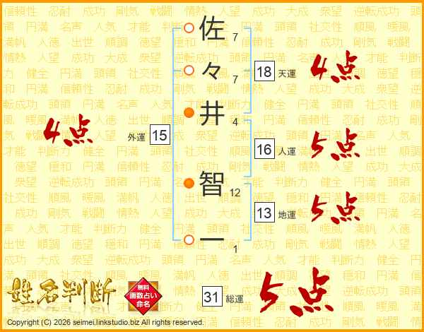 佐々井智一さんの総運は31画の5点!