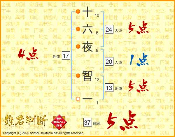 十六夜智一さんの総運は37画の5点!