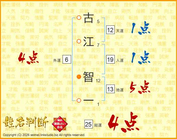 古(5画)江(7画) 智(12画)一(1画)