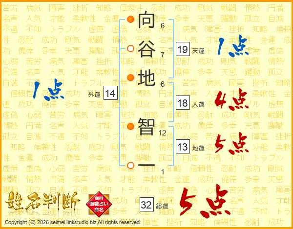 向谷地智一さんの総運は32画の5点!