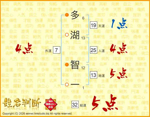 多湖智一さんの総運は32画の5点!