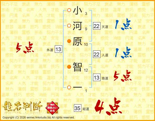 小河原智一さんの天運は22画の1点!