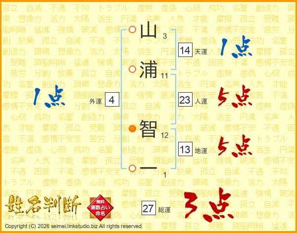 山浦智一さんの天運は14画の1点!