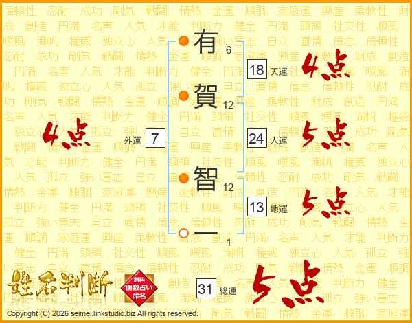 有賀智一さんの人運は24画の5点!