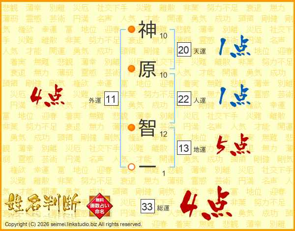 神原智一さんの総運は33画の4点!