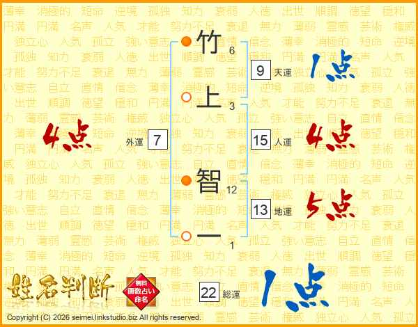 竹上智一さんの総運は22画の1点!