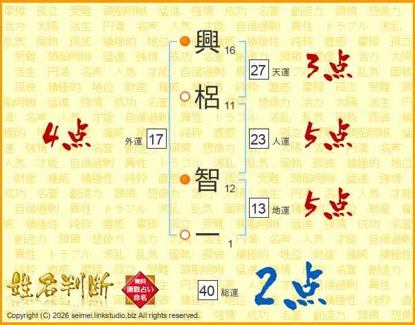 興(16画)梠(11画) 智(12画)一(1画)