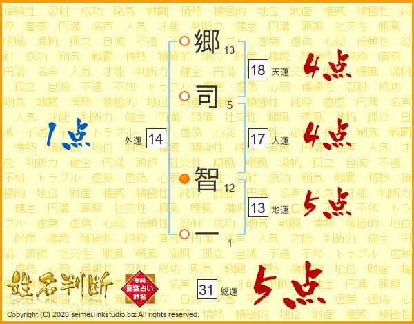 郷(13画)司(5画) 智(12画)一(1画)