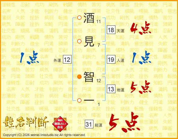 酒見智一さんの総運は31画の5点!