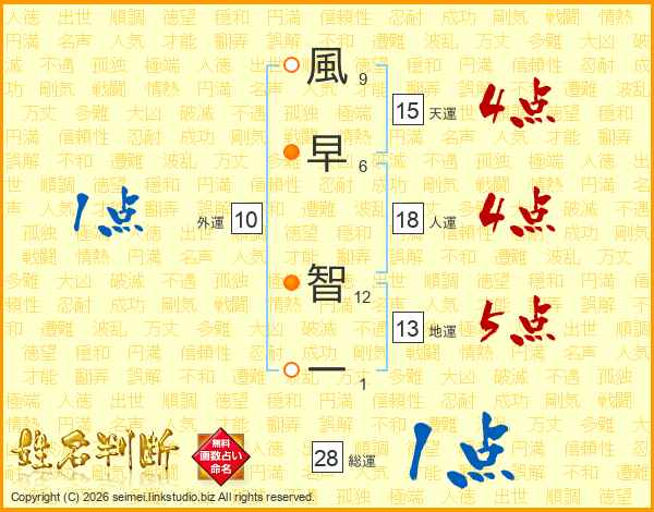 風早智一さんの人運は18画の4点!