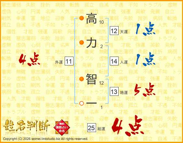 高力智一さんの人運は14画の1点!
