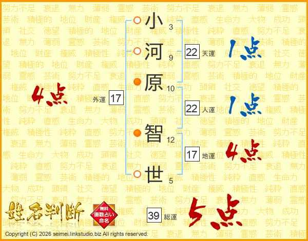小(3画)河(9画)原(10画) 智(12画)世(5画)