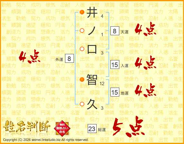 井ノ口智久さんの総運は23画の5点!
